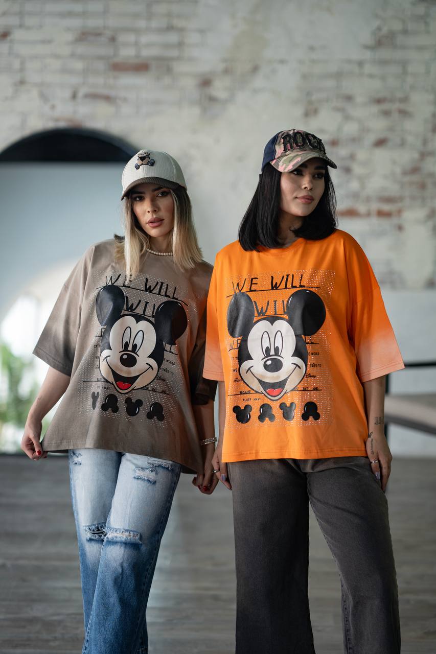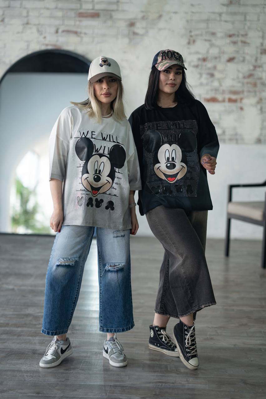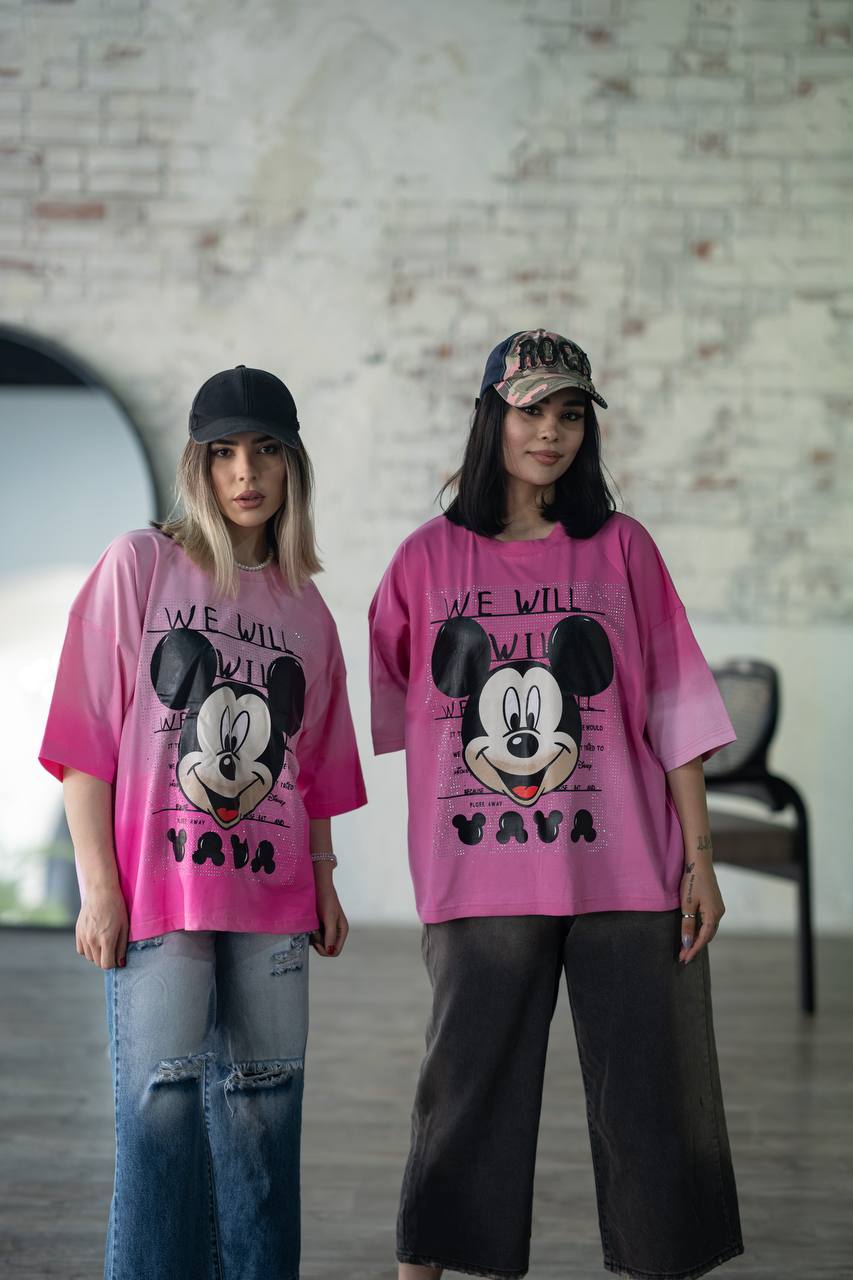 تیشرت باکسی نگین کاری جنس نخ پنبه سایز ۳۶/۴۶